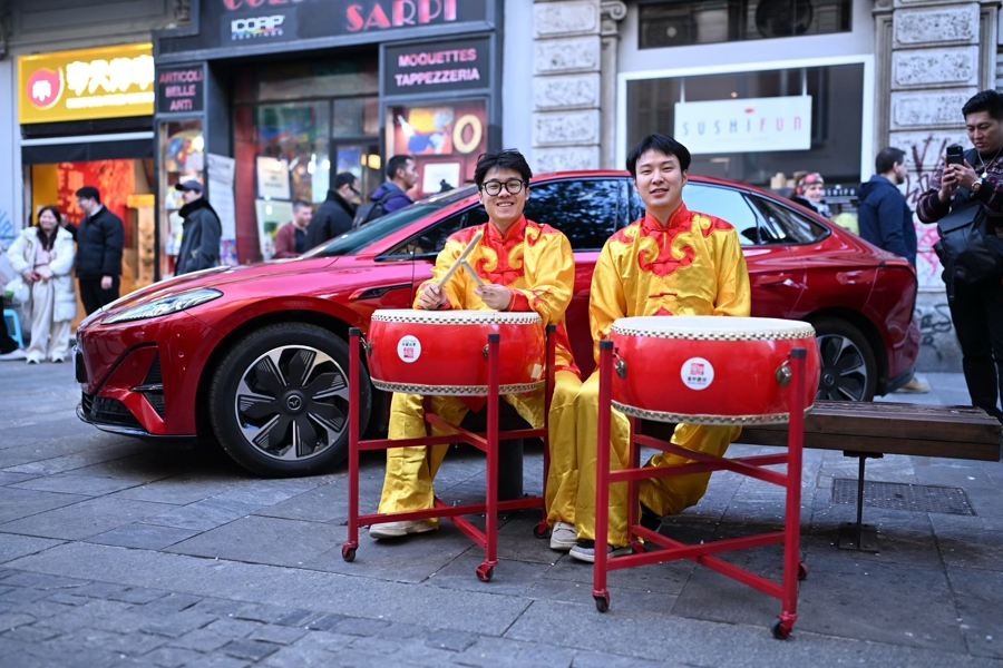 此时的唐人街,意大利街头艺人唱起了脍炙人口的中文情歌,为路过的中国游客和华人带来丝丝暖意;炸串、生煎包、烤鸭、奶茶店门口大排长龙,意大利及各国游客争相品尝中国美食,年味在街头巷尾愈发浓郁。